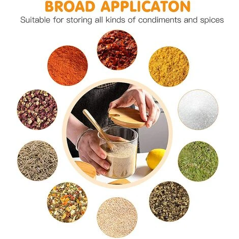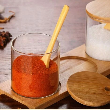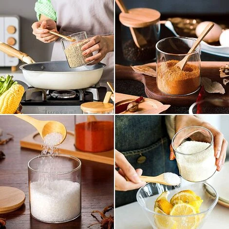 Contenitore per alimenti in vetro per condimenti per spezie con coperchio in bambù e cucchiaio di legno