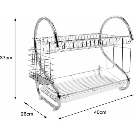 Cestelli scolapiatti per lavelli, Effe Mellifluous in acciaio inox cromato Presentazione prodotto: Scolapiatti Mellifluous effetto acciaio inox cromato Double Level con portabicchieri e piletta di scarico per posate ▲