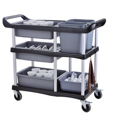 Per esempio, sarà il vostro alleato ideale per apparecchiare o sparecchiare una tavola grazie ai suoi vari scompartimenti forniti. Potete separare direttamente i piatti dalle posate e dai bicchieri e i resti di cibo andranno in uno dei due bidoni.