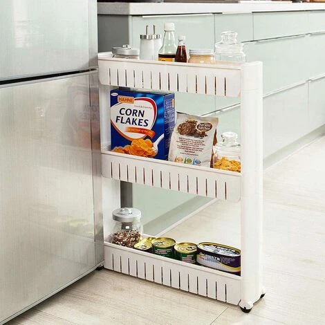 1 x Carrello Carrellino Slim Salvaspazio Cucina Bagno Ripostiglio 3 Ripiani e 4Ruote