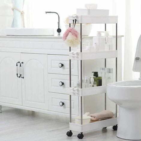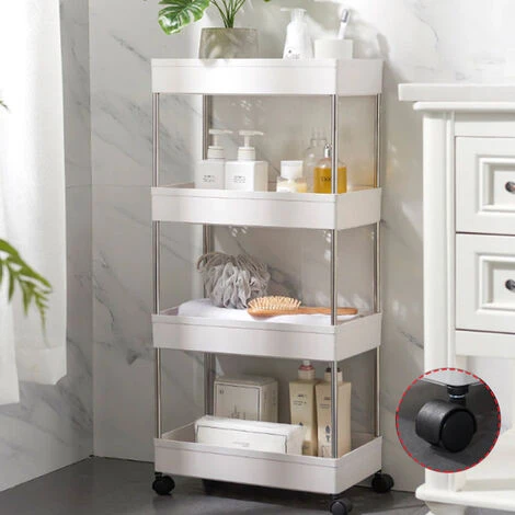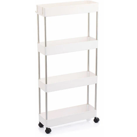 CONTENUTO DELLA CONFEZIONE:1 x Carrello Carrellino Slim Salvaspazio Cucina Bagno Ripostiglio 4 Ripiani 4 Ruote