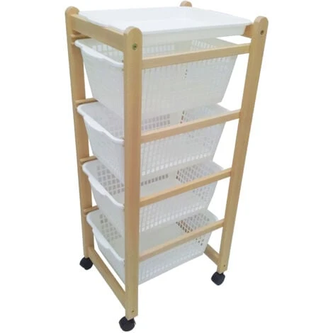 Carrello Cucina in Legno Naturale Salvaspazio porta Frutta per Interno con 4 Cestelli in Plastica