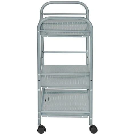 La struttura è in metallo in tubolare da 25mm, ripiani in acciaio traforato, verniciatura eposidica antigraffio.