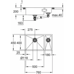 1 x Lavello da cucina(Senza rubinetto et distributore di sapone)