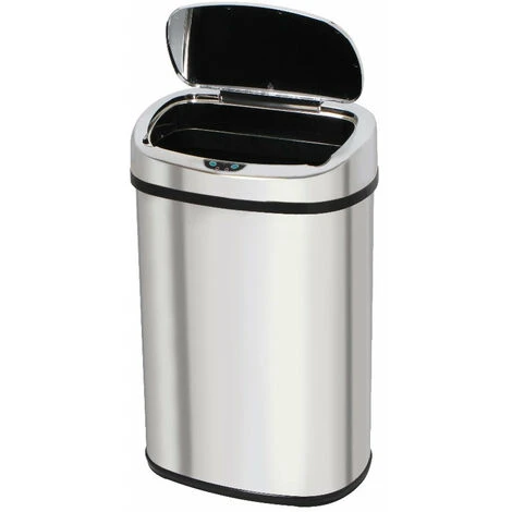 Cestino automatico rettangolare con reggiatura. Capacità 58 L. Modello MAJESTIC in acciaio inox. Finitura lucida a specchio. Dimensioni: 41 x 29 x 65 cm. Peso: 3,4 kg. Corpo in acciaio inossidabile (0,4 mm) e coperchio in ABS. Funziona con 4 batterie LR20 (non incluse). Pulsante ON/OFF (per mantenere il coperchio aperto). Include: un anello di plastica per tenere la vostra pattumiera e un anello per il pavimento per proteggere i pavimenti fragili. Cestino intelligente che funziona con un sistema a infrarossi e impedisce di toccare il coperchio del cestino. Pratico e igienico, il coperchio si apre e si chiude automaticamente quando si passa la mano o un oggetto 15 cm sopra la fotocellula. Possibilità di tenere il coperchio aperto grazie ai pulsanti OPEN / CLOSE (per un’apertura prolungata). I suoi materiali lisci (acciaio inossidabile e ABS) lo rendono facile da pulire. Nessun montaggio richiesto. Più che un cestino, un pezzo di arredamento di design. Non c’è bisogno di chinarsi per buttare via i rifiuti. Cestino stabile. Base antiscivolo. Chiusura silenziosa e anti-impronta.