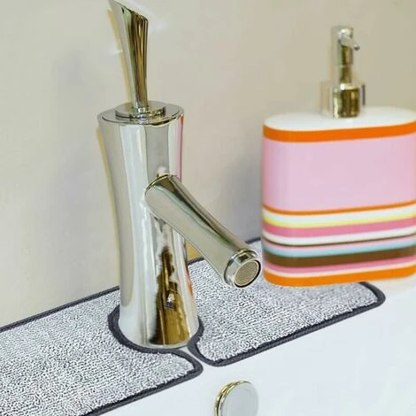 Contenuto della confezione: riceverai 4 cuscinetti per rubinetti grigi da 38 x 4,5 cm. Con foro per rubinetto da 2,5 pollici che si adatta alla maggior parte dei rubinetti sul mercato.Materiale di qualità: i nostri tappetini per la pulizia del rubinetto sono realizzati in microfibra, che ha un eccellente assorbimento di acqua e olio.CONVENIENTE E CONVENIENTE: il tappetino assorbente è ottimo per prevenire macchie d’acqua sulla cucina e bancone del bagno. Non è necessario pulire la superficie del lavandino ogni volta dopo aver utilizzato il rubinetto.,Design a tutto tondo: il nostro tappetino assorbente per rubinetti ha uno speciale design a tutto tondo, che è molto adatto per i rubinetti circostanti e facile da mettere sulla base del rubinetto sotto i 2 , 5 possono essere installati di diametro., Lavabile in lavatrice: è possibile cambiare e pulire regolarmente i tappeti in lavatrice e asciugatrice. È meglio sostituirlo ogni due giorni.