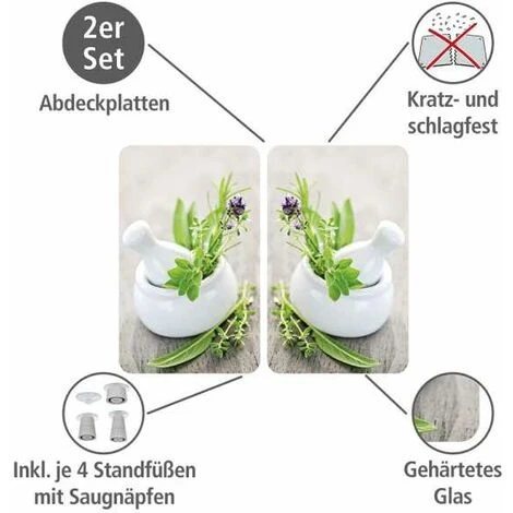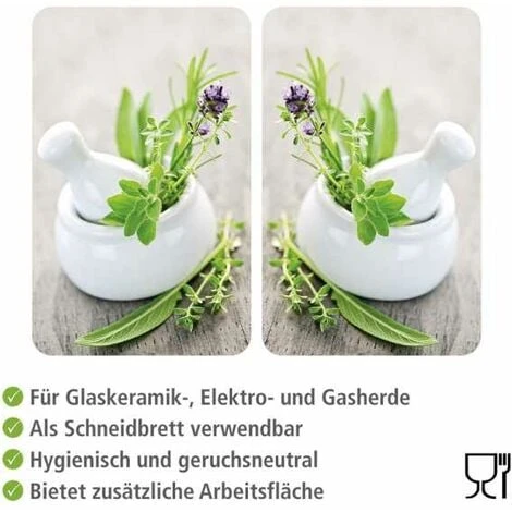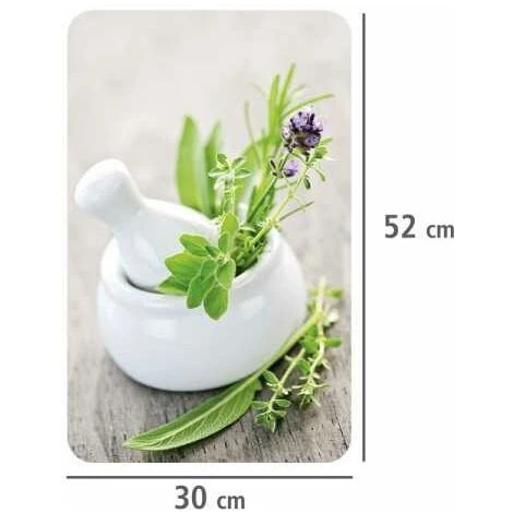 Gradite più colore in cucina e sui fornelli? Con i coprifornelli Piante aromatiche giungono contemporaneamente molteplicità di colori e funzionalità in ogni cucina. I coprifornelli possono essere utilizzati per svariati scopi: sia come piano di lavoro o protezione per la parete, come tagliere o piano di lavoro mobile. Due piani in vetro coloratissimi creano il buon umore. I coprifornelli creano individualità e sono adatti sia per vetroceramica che per fornelli elettrici o a gas, in quanto i piedini flessibilmente regolabili mantengono sempre la distanza ottimale. La superficie antigraffio e priva di pori dei coprifornelli impedisce l’annidamento di batteri e la formazione di odori sgradevoli soddisfacendo le massime esigenze igieniche. Il materiale di alta qualità è robusto, resistente ai colpi.L: 30 cm x A: 1,8-4,5 cm x P: 52 cm, je Platte