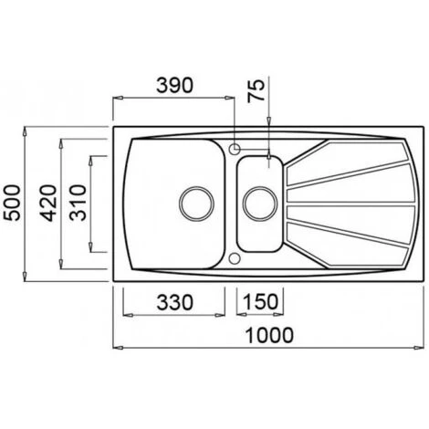 Elleci Living 475 G40. Tipo di lavello: Lavello montato su piano, Forma del lavandino: Rettangolare, Materiale del lavandino: Granitek. Larghezza: 1000 mm, Profondità: 500 mm