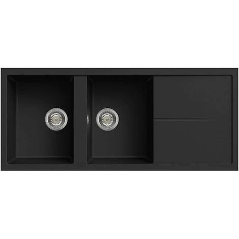 Elleci LGU50040 Unico 500 Lavello Granitek Gocciolatoio Reversibile 2 Vasche 116 Cm Nero