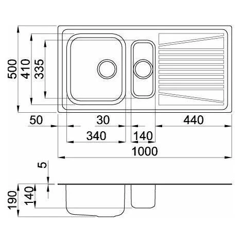 Elleci River 475. Tipo di lavello: Lavello montato su piano, Forma del lavandino: Rettangolare, Materiale del lavandino: Acciaio inossidabile. Larghezza: 1000 mm, Profondità: 500 mm, Altezza: 190 mm