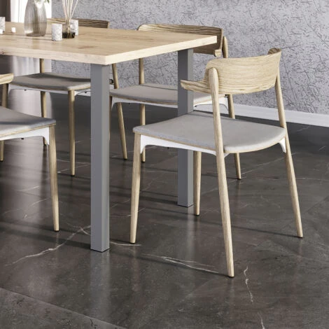 - Dispone di gommini in plastica in tinta con la finitura, che fungono da terminazione per le gambe ed evitano di danneggiare il pavimento.