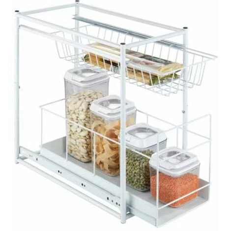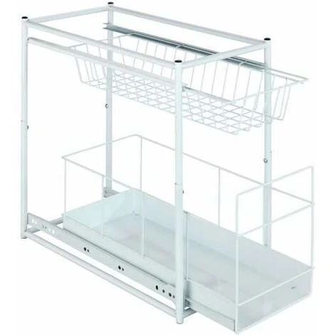 Se lo spazio in cucina dovesse essere ristretto, l’elemento estraibile per armadio, dotato di due scomparti, rappresenta la giusta soluzione. Ideale per ampliare l’armadio della cucina, l’elemento estraibile per armadio crea maggiore spazio e ordine. Grazie a due cestelli estraibili viene a crearsi spazio per spugne, detergenti o asciugamani. Il montaggio nell’armadio della cucina è semplice e può essere svolto velocemente. Perfettamente adatto per il montaggio sul fondo dell’armadio. Un vero aiuto nel caos della cucina.L: 23 cm x A: 45 cm x P: 45 cm