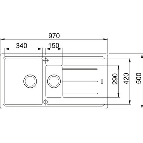 Caratteristiche del Lavello 97x50cm con raccogli salsa e gocciolatoio reversibile, Fragranit+, Bianco, Franke Basis BFG 651 (BFG651B):
