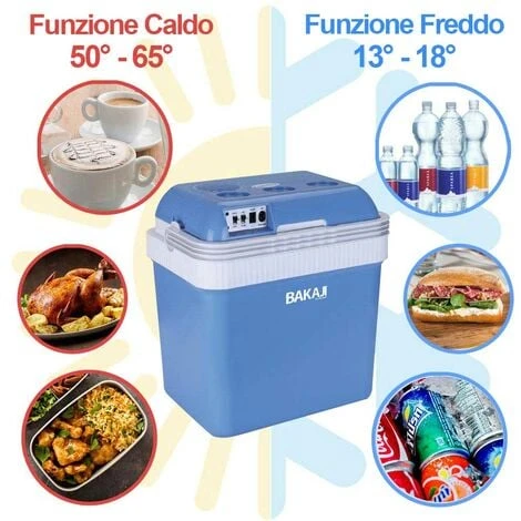 Il frigorifero portatile Bakaji ha una funzione di raffreddamento e una di riscaldamento ciò permette il suo utilizzo sia in estate che in inverno.