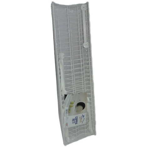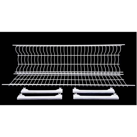 Coppia reti scolapiatti portabicchieri in acciaio smaltato bianco con supporti di montaggio. Larghezza 86 cm, profondità 22 cm. Made in Italy.