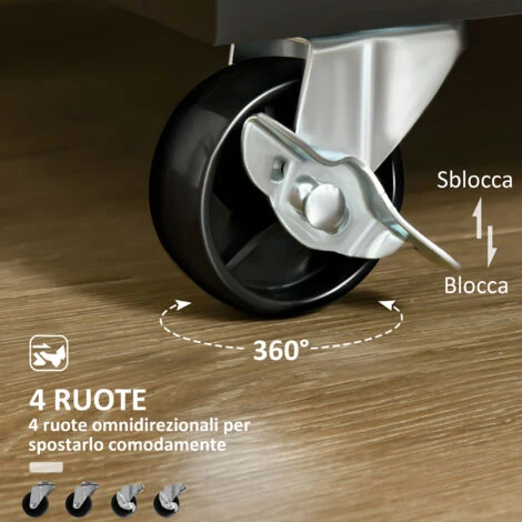 Hai sempre sognato una cucina ben attrezzata? Realizzare il tuo sogno è più facile di quel che pensi: ti serve solo questo carrello da cucina HOMCOM. Costruito in MDF e legno di albero della gomma, è resistente e compatto, perfetto anche per cucine di piccole dimensioni. Ha un ampio piano d’appoggio, un cassetto, un armadietto e un porta strofinacci: tutto lo spazio che ti serve per riorganizzare i tuoi accessori, e averli sempre pronti all’uso.