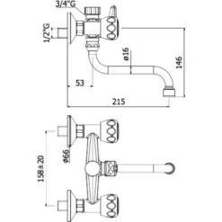 Rubinetto Lavello A Muro Con Canna Orientabile Attacco Lavatrice Paffoni Danubio DA169 Cromo