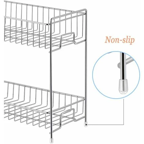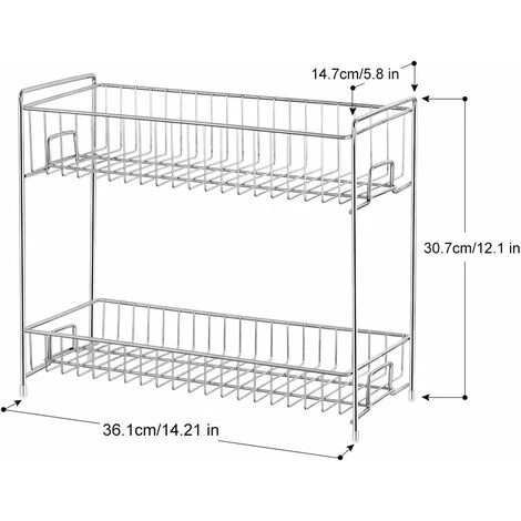 1. Alta capacità: 36, 1 cm x 30,7 cm x Ripiano cromato da 14,7 cm a 2 livelli per riporre spezie, condimenti, macinasale e pepe o altri piccoli oggetti come lozioni, trucco, asciugamani, detergenti, saponi, shampoo e molto altro.