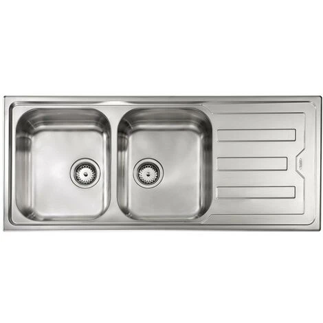 Lavello serie Cristal cm 116×50 due vasche sinistre e gocciolatoio, foro 3, incasso standard, foro incasso cm 113,5 x 47,5 , acciaio inox AISI 304-18/10.
