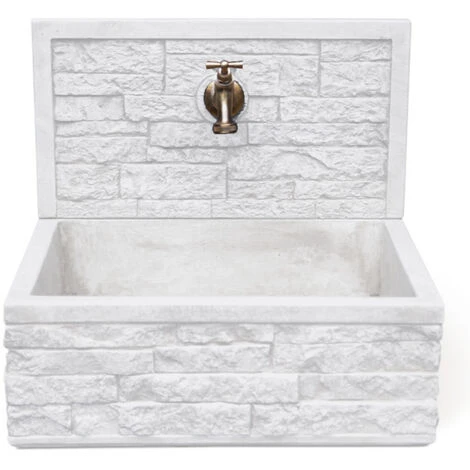 Di dimensioni pari a 45x35x16h cm (h 40 cm con il para schizzi), resistente e leggero, con un peso di circa 27 Kg, il lavandino da esterno che ti proponiamo è sprovvisto di piletta (da acquistare a parte cod. PIL-NEW-114-B) e di rubinetteria (acquistabile su CeramicStore).