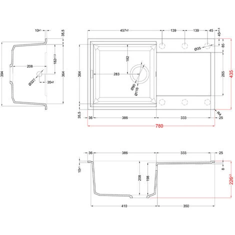 - Corredo: Sifone salvaspazio, piletta e ganci