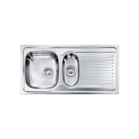 Lavello serie Mondial cm 100×50 due vasche sinistre e gocciolatoio, foro 3, incasso standard, foro incasso cm 113,5 x 47,5 , acciaio inox satinato AISI 304-18/10.