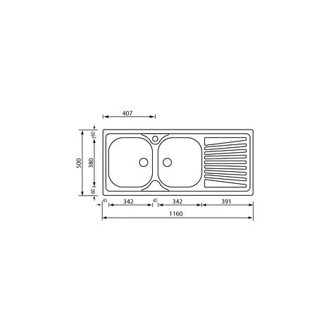 Lavello serie Mondial cm 116×50 due vasche sinistre e gocciolatoio, foro 3, incasso standard, foro incasso cm 113,5 x 47,5 , acciaio inox AISI 304-18/10.