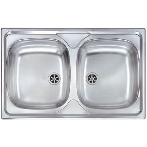 Lavello serie Mondial cm 79×50 due vasche, foro 3, incasso standard, foro incasso cm 77,0 x 48,0 , acciaio inox AISI 304-18/10.