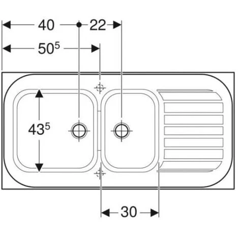Lavello romano con due vasche e uno scolapiatti 1200x600mm.