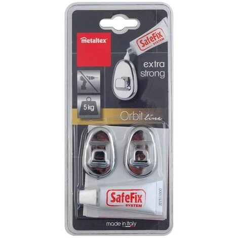 Set 2 ganci cromati safe-fix + colla per serie metaltex orbit. Non è necessario forare le piastrelle grazie alla colla inclusa nella confezione.