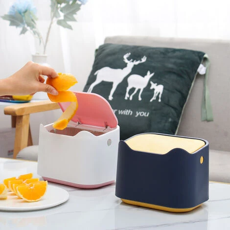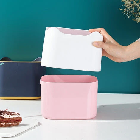 Descrizione: Desktop Cestino per Desktop Mini Cestino Desktop da Ufficio Cestino da Bagno Cestino per Rifiuti da Cucina Tavolo per Spazzatura Portatile Pattumiera per auto, premere leggermente il coperchio superiore, coperchio aperto a molla.
