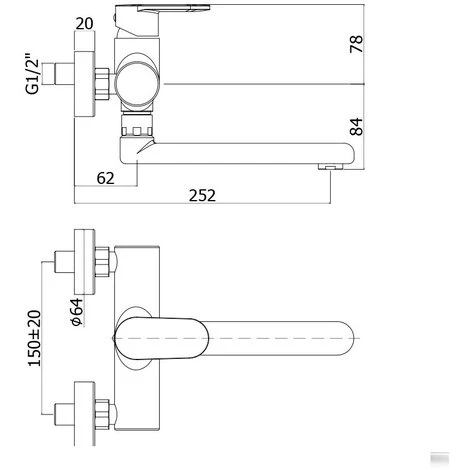 L’interasse di installazione è standard, ossia 15 cm ma grazie raccordi eccentrici forniti di serie, può essere installato su tutti gli impianti a muro il cui interasse è compreso tra 13 e 17 cm.