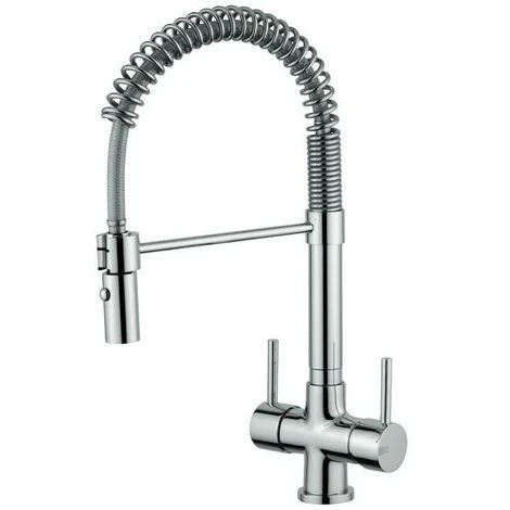 Questo miscelatore per cucina è una novità del 2019, l’azienda ha creato un miscelatore a 3 vie senza acque separate con un doppio comando, senza rinunciare al design con bocca a molla
