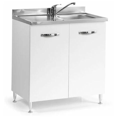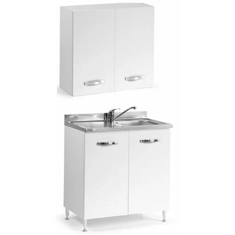 Mobile sottolavello cucina in legno nobilitato composto da due ante, in modo tale da proteggere qualunque oggetto si voglia riporvi dentro. Un mobile pensato e realizzato per durare nel tempo, completo di lavello e miscelatore.