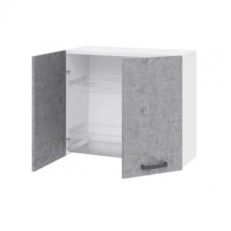 Pensile colapiatti cucina 80x32xH72 in legno Bianco frassinato e Cemento
