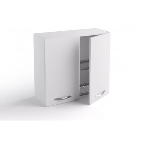 Pensile scolapiatti cucina 80x33xH72 cm in legno Bianco opaco con due ante