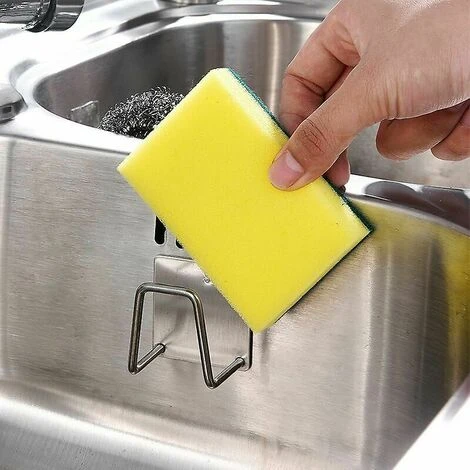 Porta spugna da cucina Scolapiatti adesivo in acciaio inossidabile 304 Scolapiatti Accessori per lavelli da cucina Organizzatore di stoccaggio.