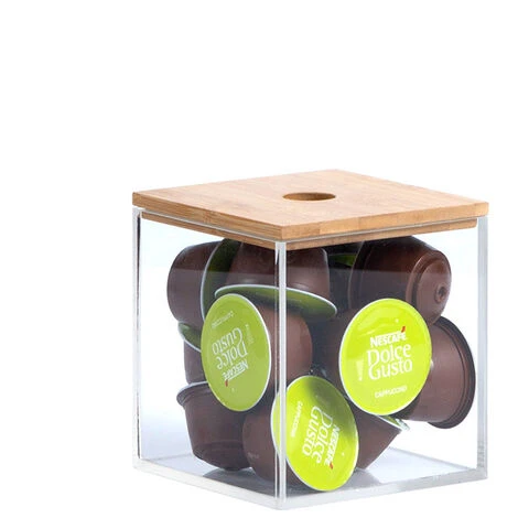 Nome: 1025 porta capsule caffè rotante con fondo in bambù trasparente