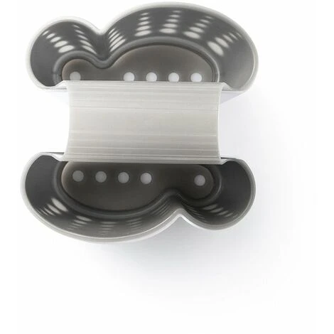 Il portaspugne ha un guscio duro di colore bianco sullo strato esterno e un guscio interno in plastica morbida di colore grigio.