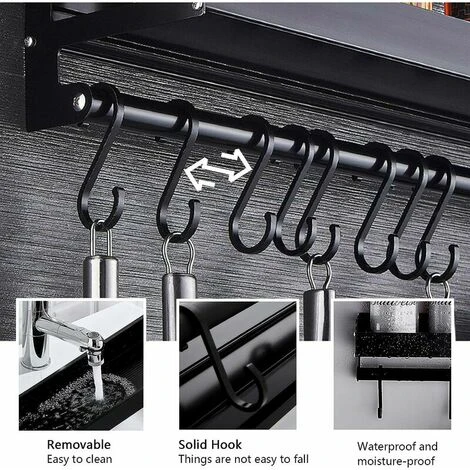 - [8 ganci]: 8 ganci in metallo ad alta resistenza per muoversi liberamente e appendere pentole o utensili per risparmiare molto spazio per la piccola cucina. Dì addio ai controsoffitti disordinati.La dimensione è 13,5 * 50 cm (nero).