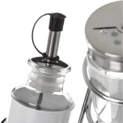 Set Oliera 4 Pezzi Olio Aceto Sale Pepe In Acciaio Stand In Metallo Portaspezie