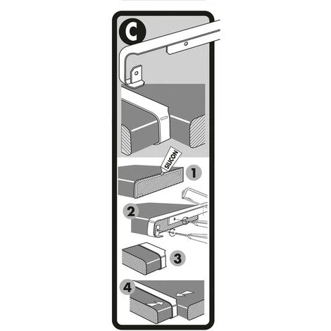 Profilo di giunzione angolare, piano di lavoro 38mm, forma a 2 quarti tondi, raggio 0 – 2 mm, Alu