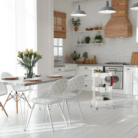 Il carrello da cucina è un ottimo acquisto per la tua cucina. Potrai usare il pratico carrellino come carrello portavivande per servire le pietanze e le bevande a tavola o durante un party in casa. Ma non solo in cucina: il mobiletto è perfetto anche in bagno accanto alla vasca oppure in ufficio per riordinare gli accessori e gli utensili. Il carrellino dispone di un inserto in feltro e 4 rotelle, di cui 2 con freni, per un trasporto confortevole e una stabilità ottimale.