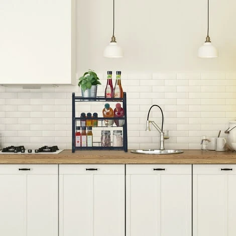 Con il portaspezie, aveteil curry, il cumino ecc. sempre a portata di mano, mentre state cucinando. Ilpratico scaffale offre 3 ripiani per riporre i barattolini con i condimenti,erbe aromatiche, bottiglie di olio o per le confezioni del vostro tè preferito.Potete poggiare il pratico organizer sul piano della cucina. Il piano centraleè perfetto per poggiare bottiglie di olio, aceto o salsa di soia, mentre ildesign aperto permette di prendere spezie e bottiglie facilmente.