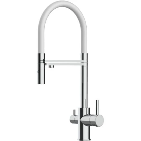 Rubinetto tre vie cucina cromato per utilizzo con filtro depuratore, canna colorata movibile e doccia staccabile 2 getti