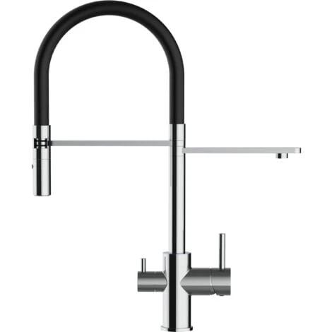 Rubinetto tre vie cucina cromato per utilizzo con filtro depuratore, canna colorata movibile e doccia staccabile 2 getti