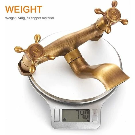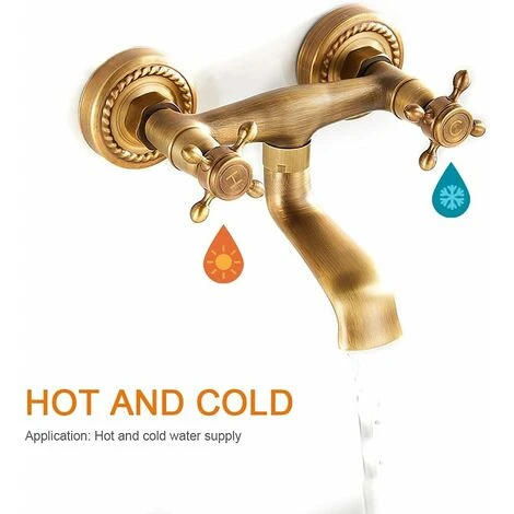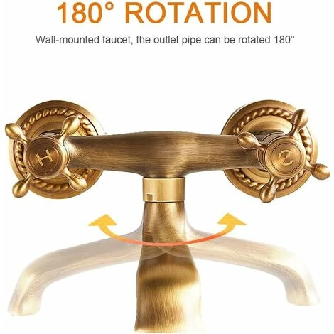 【Rubinetto a parete vintage】 Il miscelatore da cucina retrò a parete di alta qualità con due maniglie è adatto per lavelli. La maniglia ha la forma di una manopola rotante. Può essere collegato con acqua fredda e acqua calda. Il beccuccio lungo può essere ruotato di 180°, perfetto per lavandini singoli o doppi.