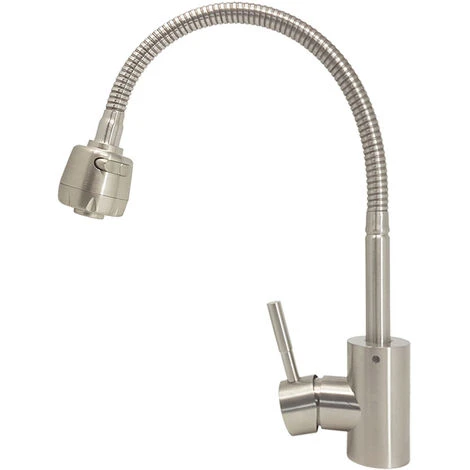 Rubinetto miscelatore da casa con canna alta e flessibile per direzionarlo e spostarlo in qualsiasi posizione, indicato per lavabo della cucina a doppia vasca.