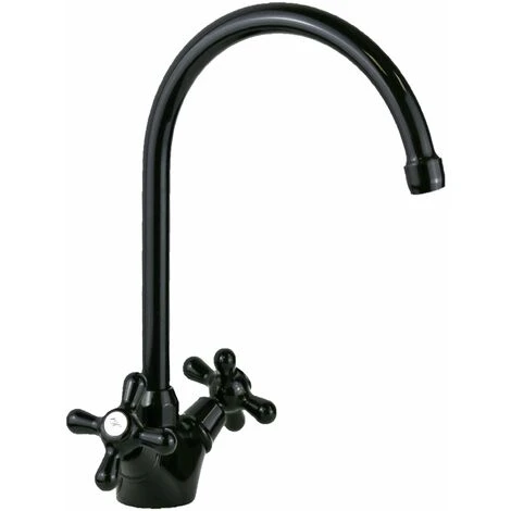 Rubinetto tradizionale in colore nero lucido di facile utilizzo e con un colore moderno, la verniciatura nero lucido dona a questo prodotto un tocco di modernità, la bocca è girevole di 360° per facilitare le operazioni di pulizia delle soviglie, dotato di doppio comando con vite ceramica e placche con serigrafie HOT e COLD.