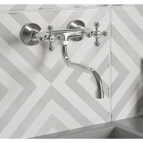 Rubinetto Per Cucina O Lavatoio A Muro Parete Maniglie Stella,vintage Per Lavatoio